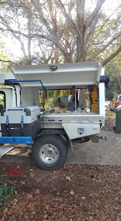 Designing and fabricating the "pull type rams" using ropes, pulleys and a boat trailer winch to raise the roof of the camper.